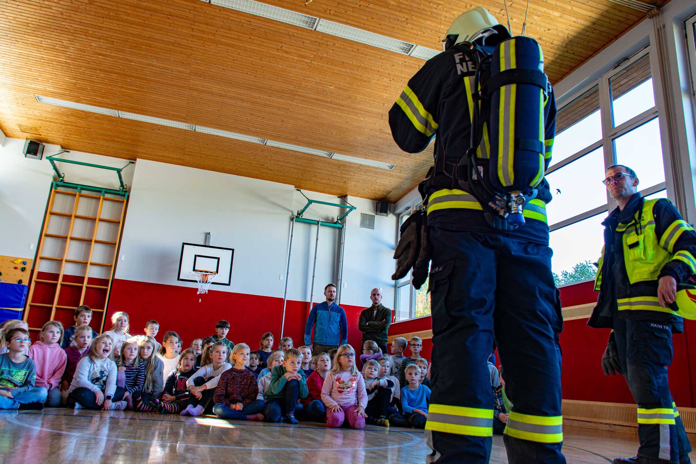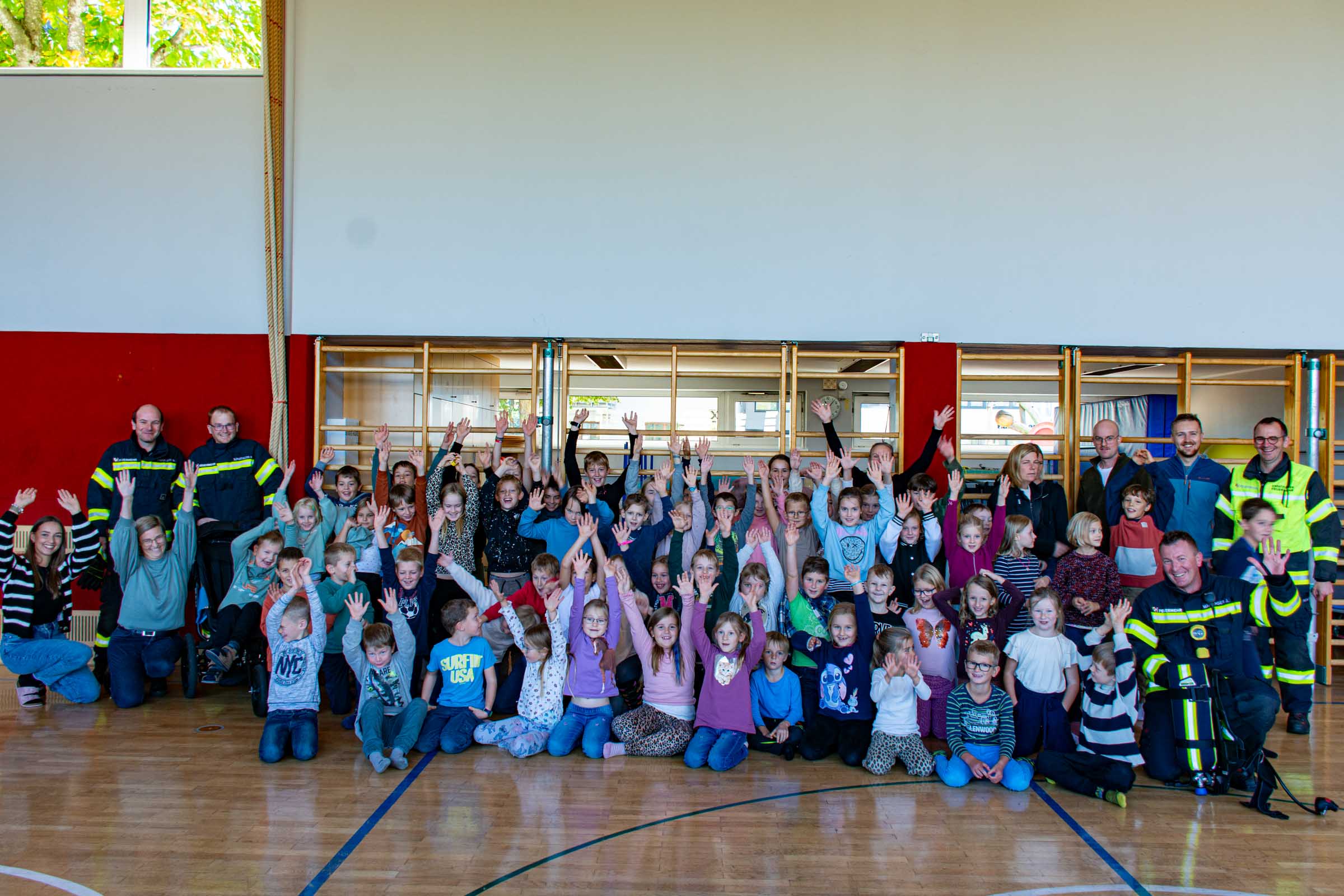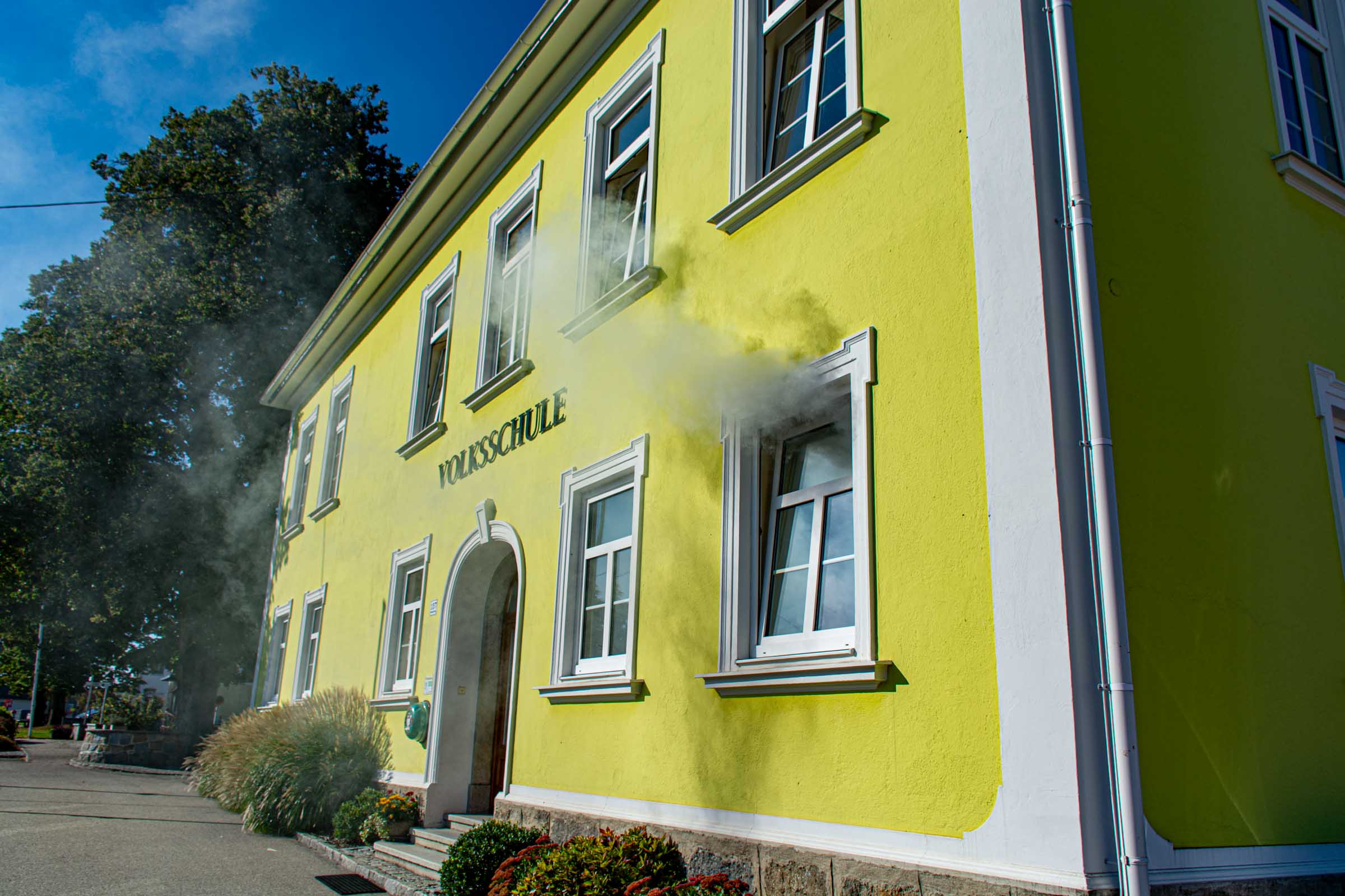 Der Freitag, 3. Oktober, stand in der Volksschule Neusserling ganz im Zeichen der Feuerwehr. Höhepunkt dieses Schultages war für die Kinder die jährlich stattfindende Räumungsübung. Das Übungsszenario war diesmal ein Brand in der Garderobe. Den Kindern mit ihren Lehrern war somit der Fluchtweg durch den Haupteingang versperrt und es müsste der Nebenausgang benutzt werden. Eine Klasse im Erdgeschoss wurde über die Leiter durch das Fenster evakuiert. Der Atemschutztrupp hat ein Kind durch das Gebäude gerettet. Die Schüler der Vierten Klasse, bereits traditionell, durften dann abschließend noch eine Runde mit dem Feuerwehrauto mitfahren.