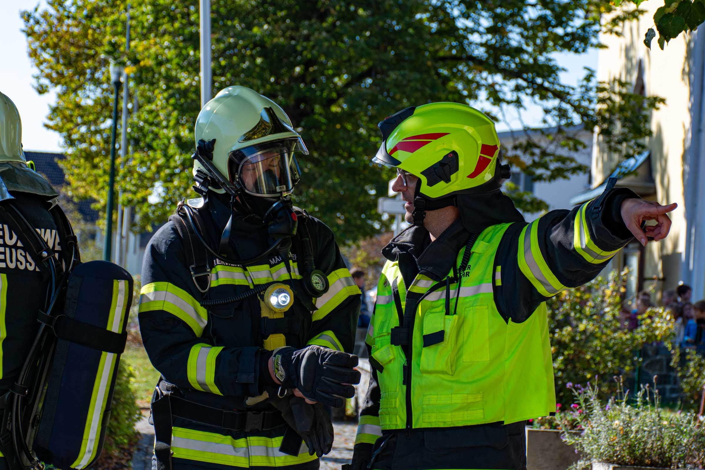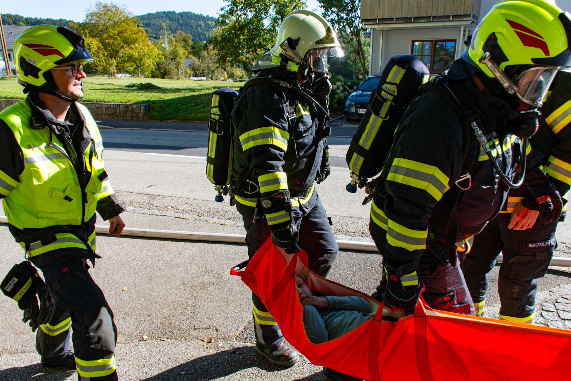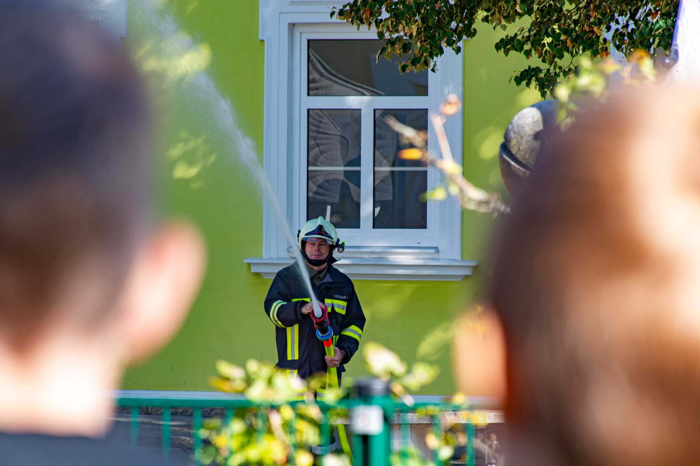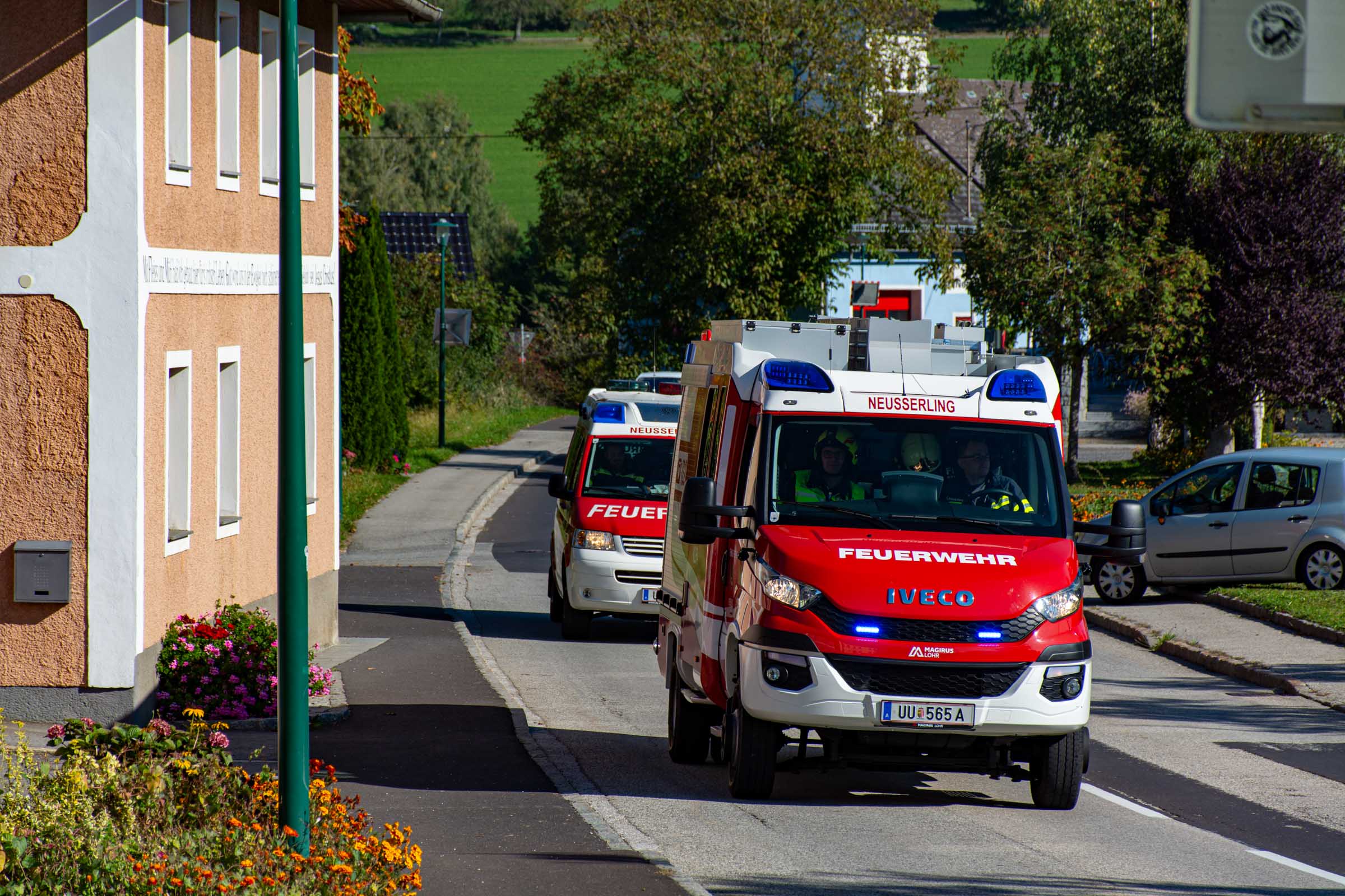 Der Freitag, 3. Oktober, stand in der Volksschule Neusserling ganz im Zeichen der Feuerwehr. Höhepunkt dieses Schultages war für die Kinder die jährlich stattfindende Räumungsübung. Das Übungsszenario war diesmal ein Brand in der Garderobe. Den Kindern mit ihren Lehrern war somit der Fluchtweg durch den Haupteingang versperrt und es müsste der Nebenausgang benutzt werden. Eine Klasse im Erdgeschoss wurde über die Leiter durch das Fenster evakuiert. Der Atemschutztrupp hat ein Kind durch das Gebäude gerettet. Die Schüler der Vierten Klasse, bereits traditionell, durften dann abschließend noch eine Runde mit dem Feuerwehrauto mitfahren.
