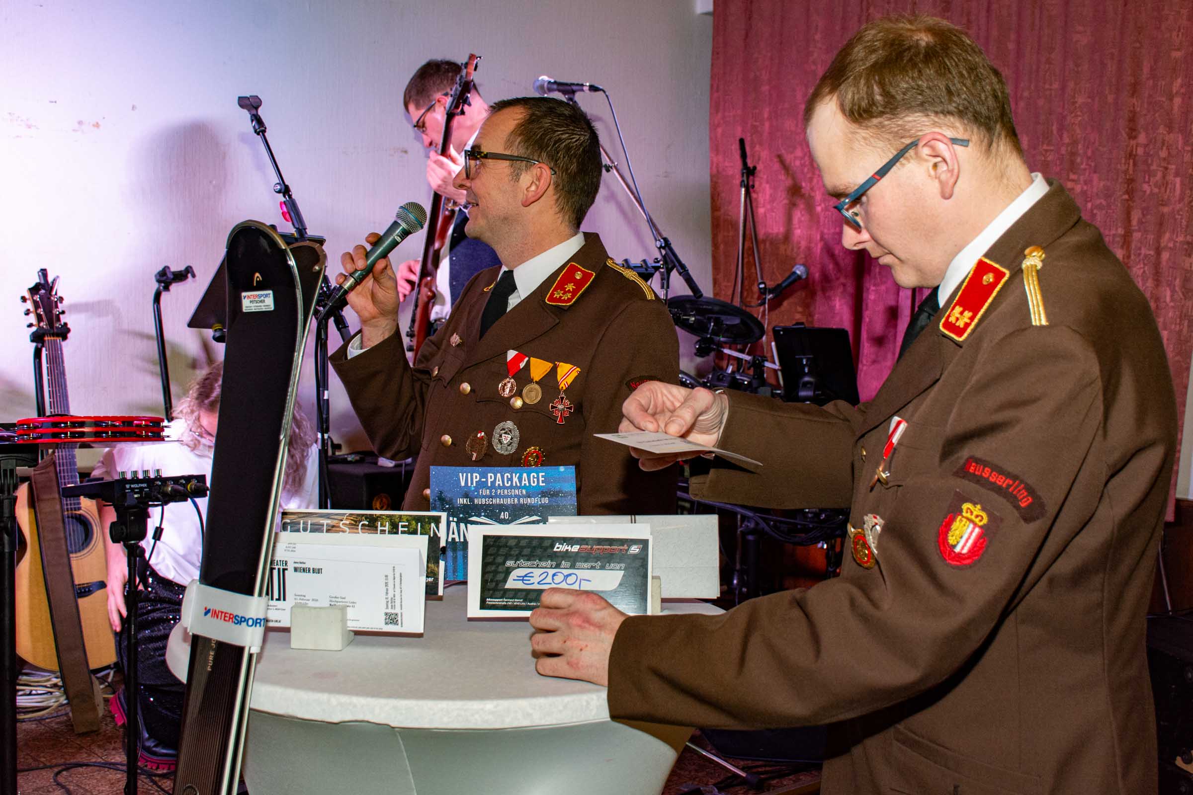 Zahlreiche Besucher und Kameradinnen und Kameraden der Nachbarsfeuerwehren aus der Umgebung von Neusserling verbrachten einige gesellige Stunden beim diesjährigen Feuerwehrball im Gasthaus Roither „Mitten in der Welt“. Die Band „Eh4 & JoJo“ sorgten für prima Stimmung. Es war für jeden Geschmack etwas dabei und das tanzbegeisterte Publikum kam voll auf seine Kosten. Beim Schätzspiel mussten die durchschnittlich gefahrenen Meter im Jahr 2025 je Fahrt unserer drei Einsatzfahrzeuge erraten werden. Bis auf 12 Meter fast genau erraten hatten den geforderten Wert Elisabeth und Manfred Haslmayr. Herzlichen Dank an die Sponsoren der Sachpreise zum Schätzspiel, Intersport Pötscher, BMW Höglinger-Denzel-Linz, bike support, Jännerrallye, Gartengestaltung Hablesreiter, Musiktheater und Gasthaus Roither. Nächsten Samstag laden die Feuerwehren der Gemeinde Eidenberg zum gemeinsamen Ball in der Geng beim Wasserwirt. Die Jägerschaft Neusserling veranstaltet ebenfalls am Samstag, nach mehr als 40 Jahren, wieder einen Jägerball im Gasthof Roither „Mitten in der Welt“