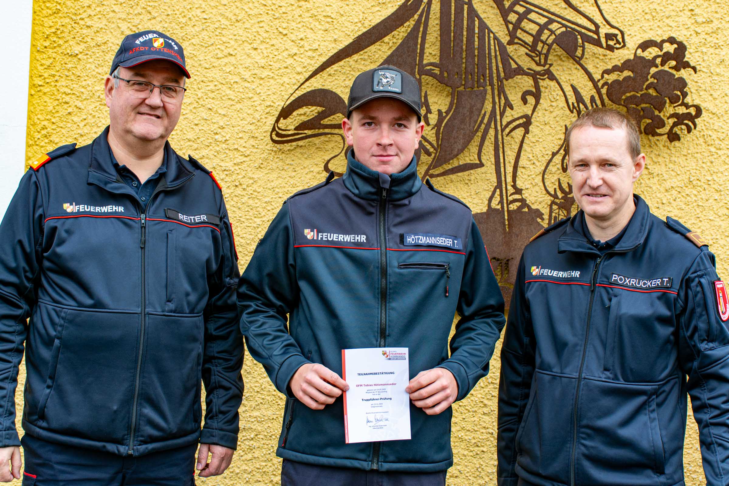 Herzliche Gratulation an Tobias Hötzmannseder, Stefan Höglinger und Johannes Wolfinger zur bestandenen Truppführer Prüfung. Einer erfolgreichen Prüfung gehen zahlreiche Stunden an Übungen in Theorie und Praxis voran. Die Teilnehmer lernen dabei feuerwehrspezifische Fragen aus diversen Fachbereichen. Darüber hinaus sind praktische Aufgaben aus Einsatzszenarien zu beherrschen. Die abschließende Prüfung dieser Ausbildung fand im Feuerwehrhaus der Freiwilligen Feuerwehr Lacken statt, wo sich alle teilnehmenden Kameraden aus unserem Abschnitt dieser Prüfung unterzogen. Unser Abschnittskommandant, BR Kurt Reiter MSc und OBI d. F. Dipl. Ing. (FH) Thomas Poxrucker überreichten abschließend die Zertifikate. Die positive Truppführer Ausbildung berechtigt die Kameraden in weiterer Folge auch zur Absolvierung nachfolgender Lehrgänge auf Bezirks- und Landesebene. Vielen Dank an das Team der Prüfer und an die Freiwillige Feuerwehr Lacken für die Räumlichkeiten.